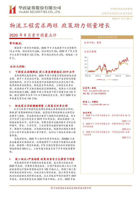 【华西证券】【20201008】2020年9月重卡销量点评:物流工程需求两旺 政策助力销量增长-6页