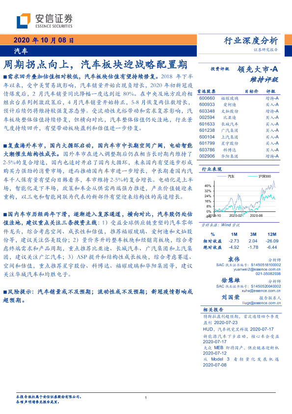 【安信证券】【20201008】汽车行业深度分析:周期拐点向上,汽车板块迎战略配置期-27页