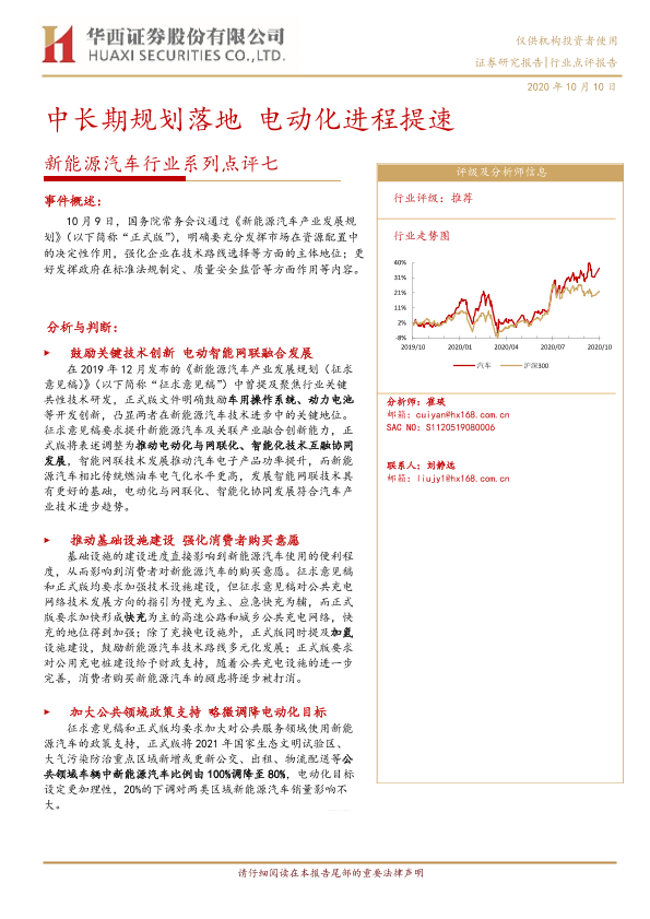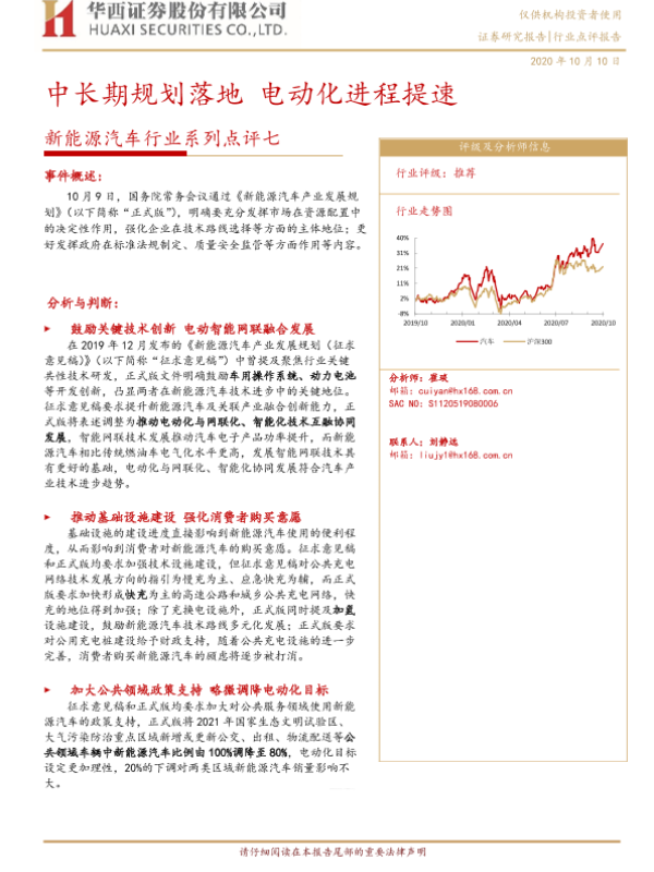 【华西证券】【20201010】新能源汽车行业系列点评七:中长期规划落地 电动化进程提速-5页