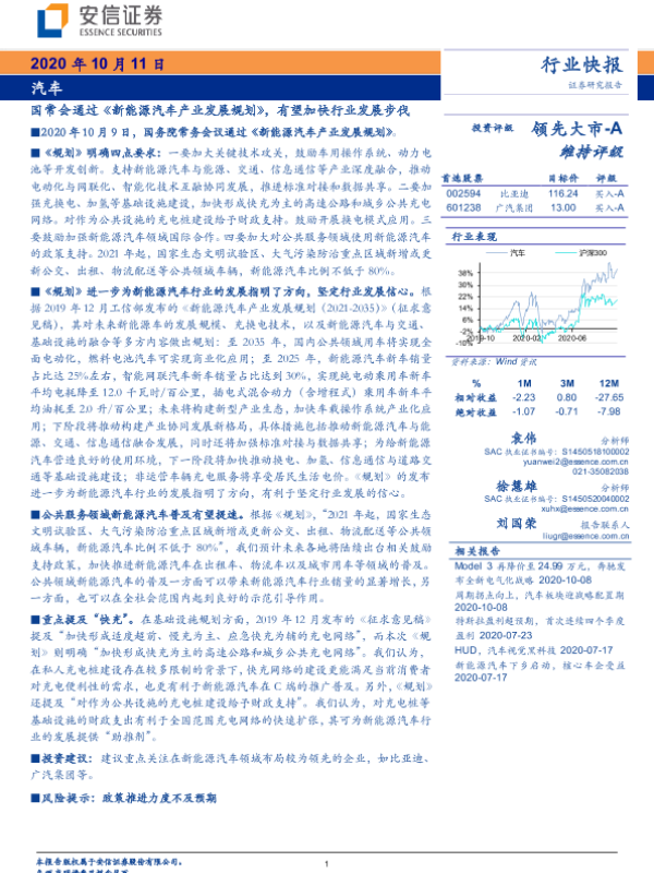 【安信证券】【20201011】汽车行业快报:国常会通过《新能源汽车产业发展规划》,有望加快行业发展步伐-3页