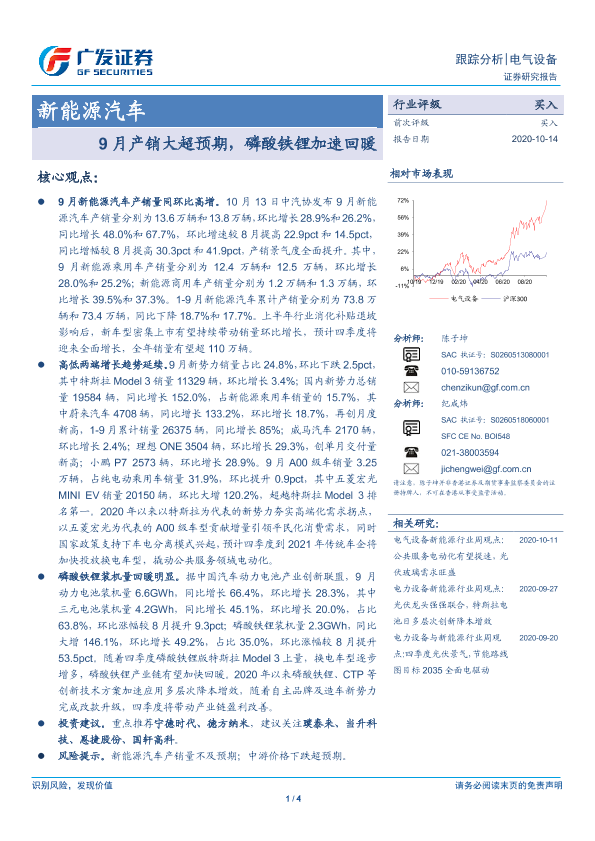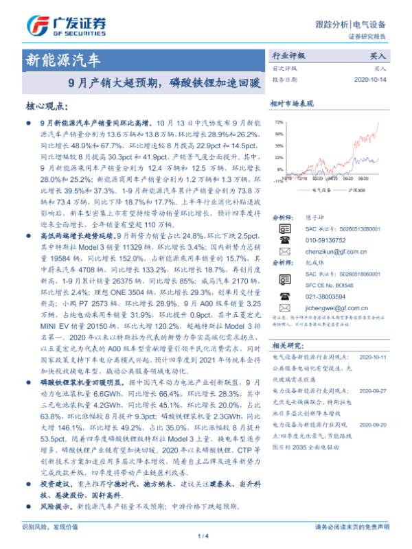 【广发证券】【20201014】20201014-广发证券-新能源汽车跟踪分析:9月产销大超预期,磷酸铁锂加速回暖-4页