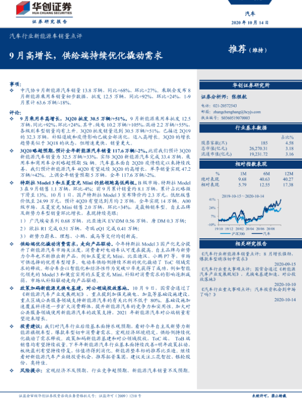 【华创证券】【20201014】汽车行业新能源车销量点评:9月高增长,供给端持续优化撬动需求-8页
