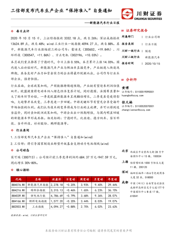 【川财证券】【20201015】新能源汽车行业日报:工信部发布汽车生产企业“保持准入”自查通知-3页