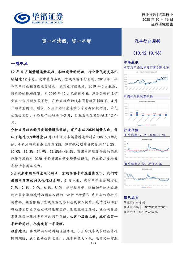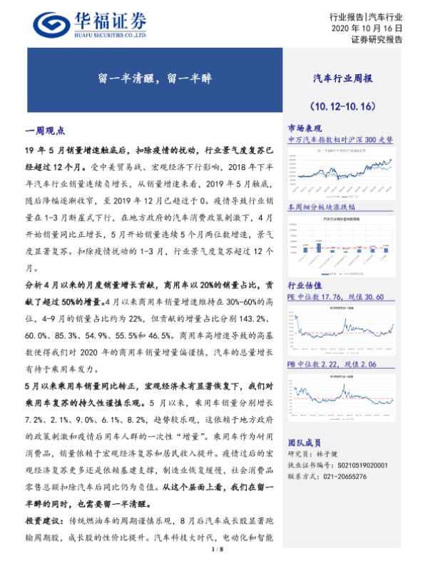 【华福证券】【20201016】20201016-华福证券-汽车行业周报:留一半清醒,留一半醉-8页