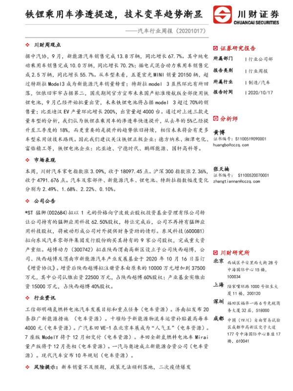 【川财证券】【20201017】汽车行业周报:铁锂乘用车渗透提速,技术变革趋势渐显-11页