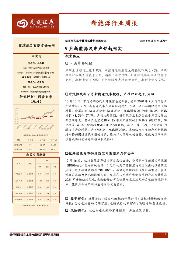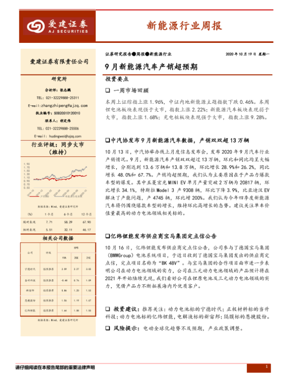 【爱建证券】【20201019】新能源行业周报:9月新能源汽车产销超预期-14页