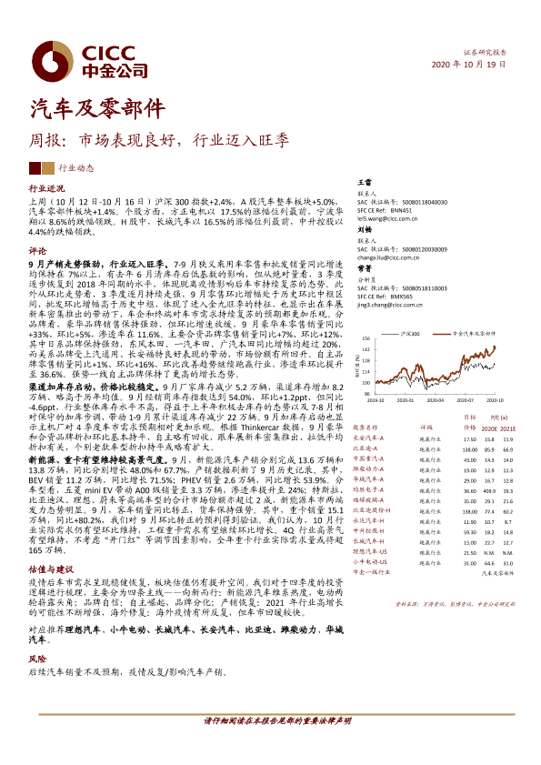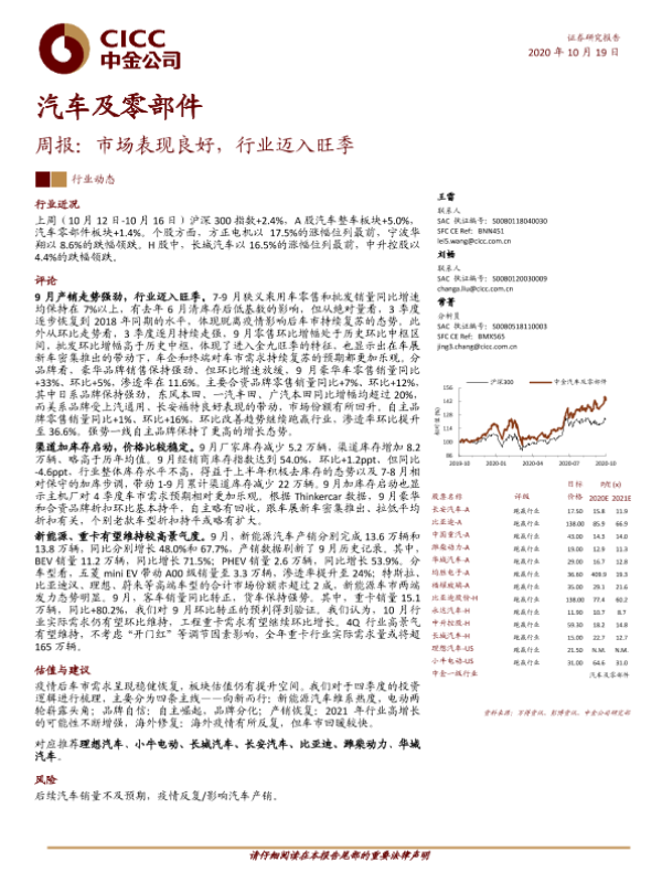 【中金公司】【20201019】汽车及零部件周报:市场表现良好,行业迈入旺季-12页