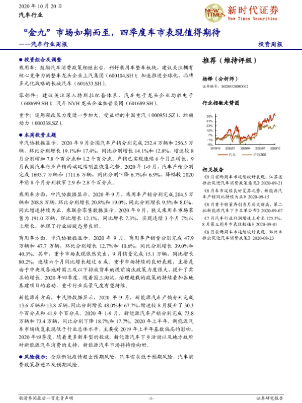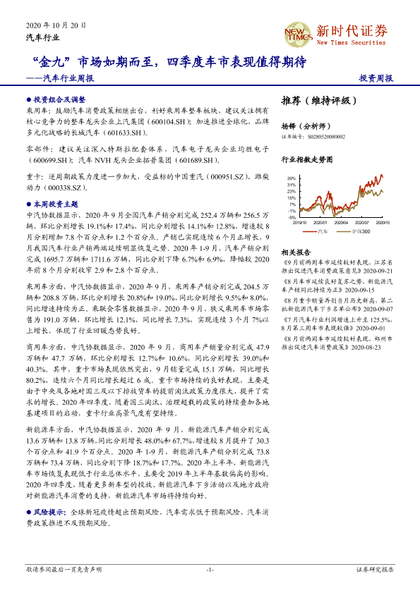 【新时代证券】【20201020】“金九”市场如期而至,四季度车市表现值得期待-20页