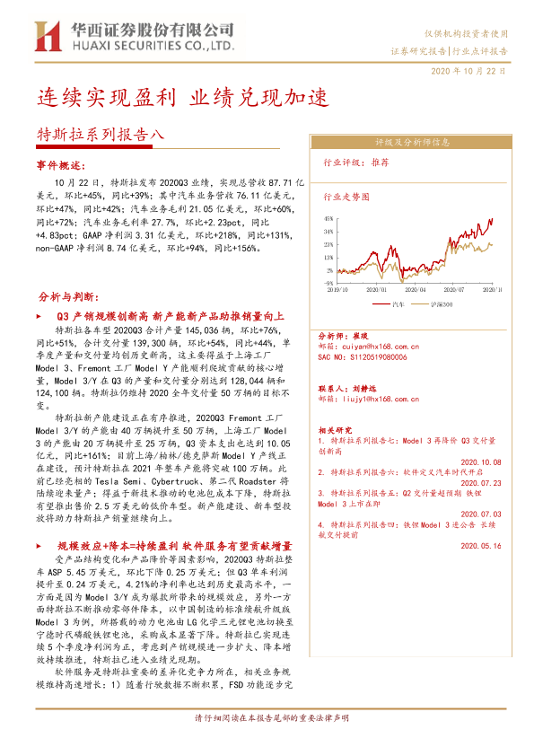 【华西证券】【20201022】特斯拉系列报告八-连续实现盈利 业绩兑现加速-7页
