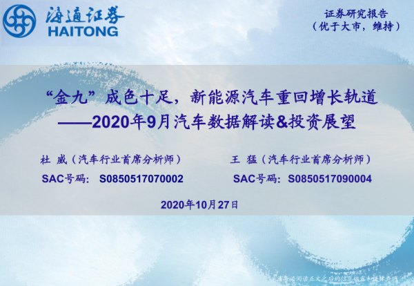 【海通证券】【20201027】2020年9月汽车数据解读&投资展望:“金九”成色十足,新能源汽车重回增长轨道-23页
