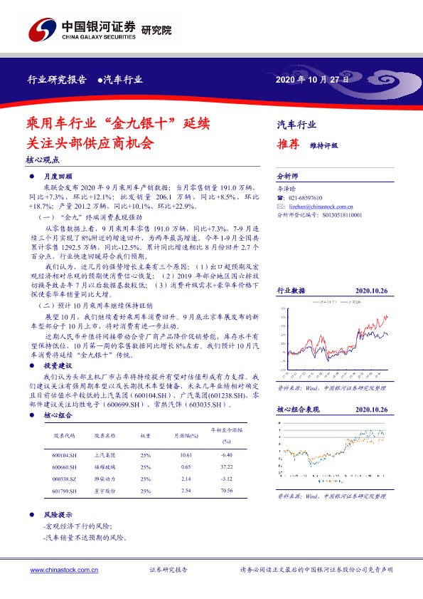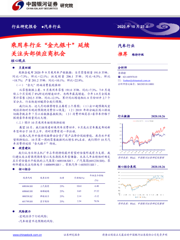 【银河证券】【20201027】汽车行业:乘用车行业“金九银十”延续关注头部供应商机会-21页