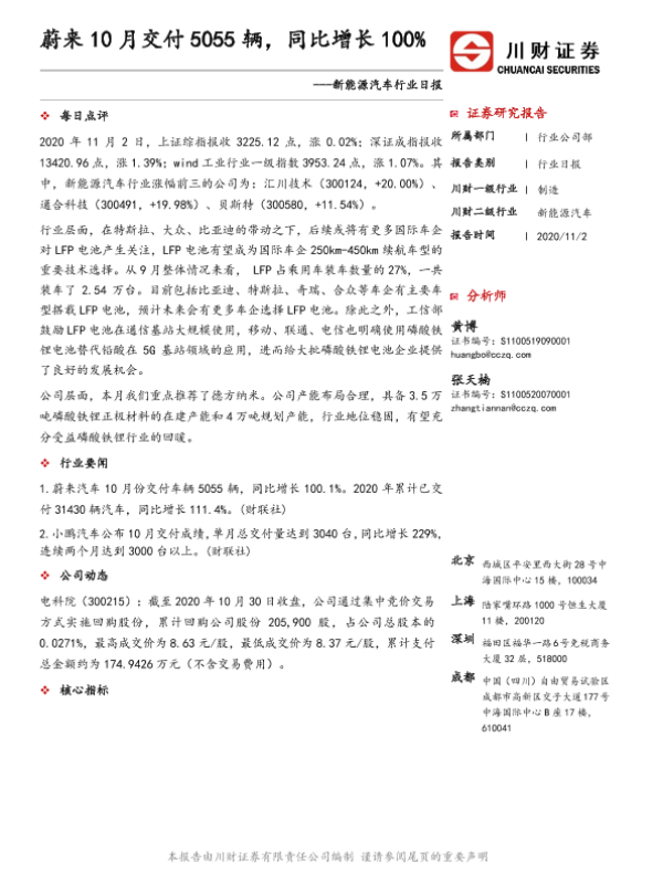 【川财证券】【20201102】新能源汽车行业日报:蔚来10月交付5055辆,同比增长100%-3页