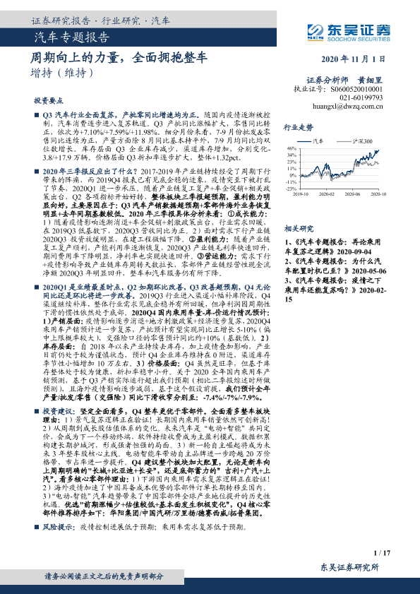 【东吴证券】【20201101】20201101-东吴证券-汽车专题报告:周期向上的力量,全面拥抱整车-17页