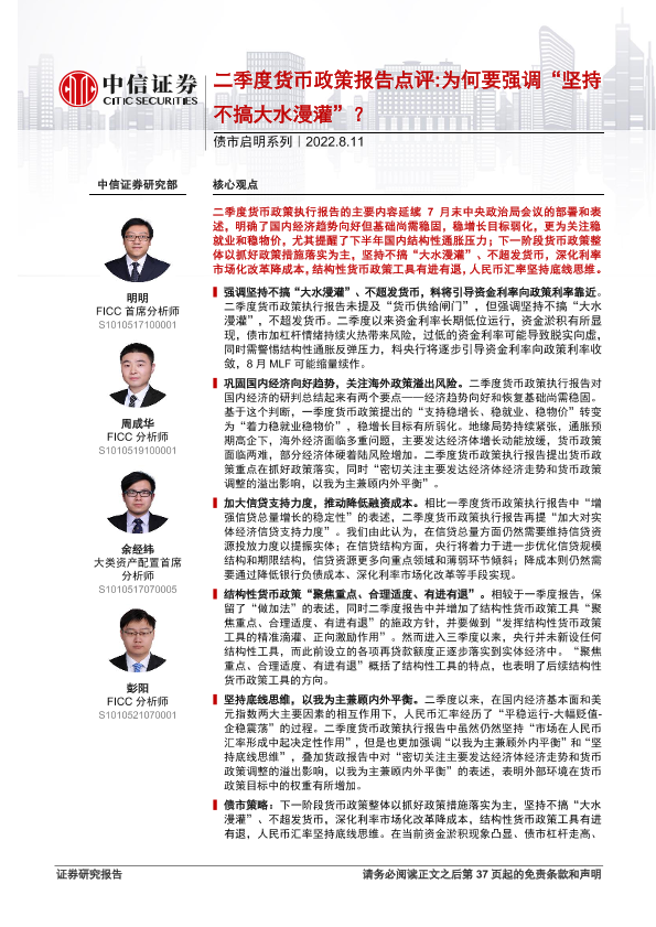 【中信证券】【20220811】二季度货币政策报告点评 为何要强调“坚持不搞大水漫灌”?-37页