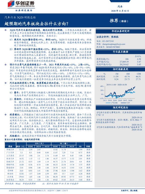 【华创证券】【20201102】汽车行业3Q20财报总结:超预期的汽车板块去往什么方向?-17页