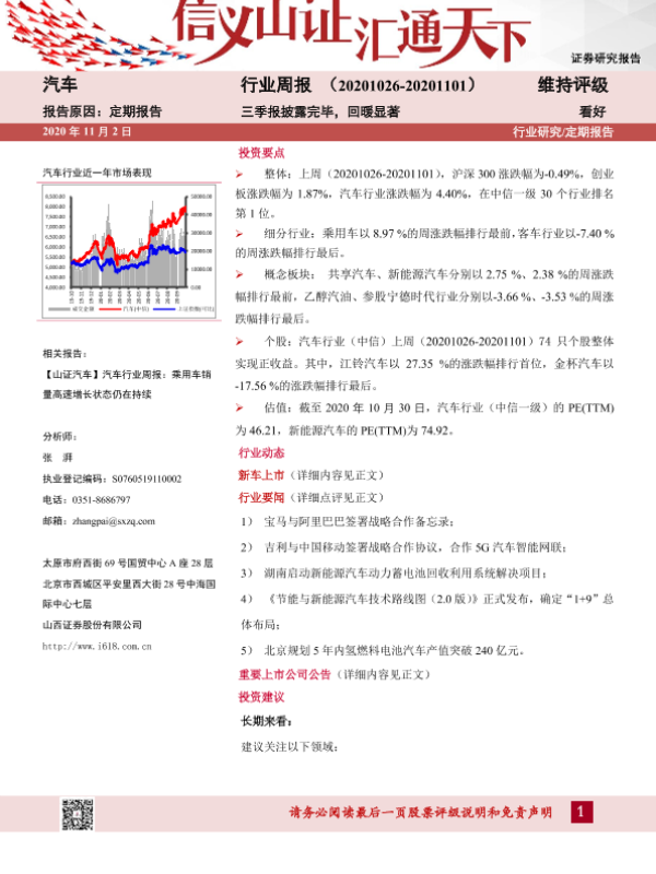 【山西证券】【20201102】20201102-山西证券-汽车行业周报:三季报披露完毕,回暖显著-16页