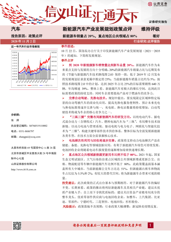 【山西证券】【20201102】新能源汽车产业发展规划政策点评:新能源车销量占20%,重点地区公共领域占80%-10页