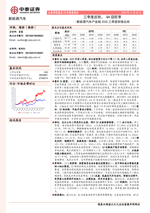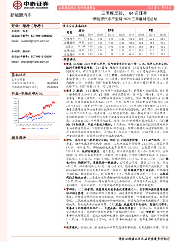 【中泰证券】【20201102】新能源汽车产业链2020三季度财报总结:三季度反转,Q4迎旺季-28页