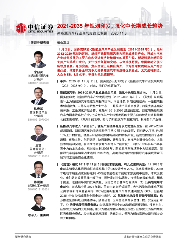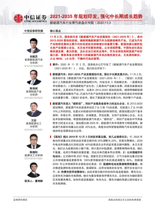 【中信证券】【20201103】20201103-中信证券-新能源汽车行业景气度盘点专题:2021-2035年规划印发,强化中长期成长趋势-3页