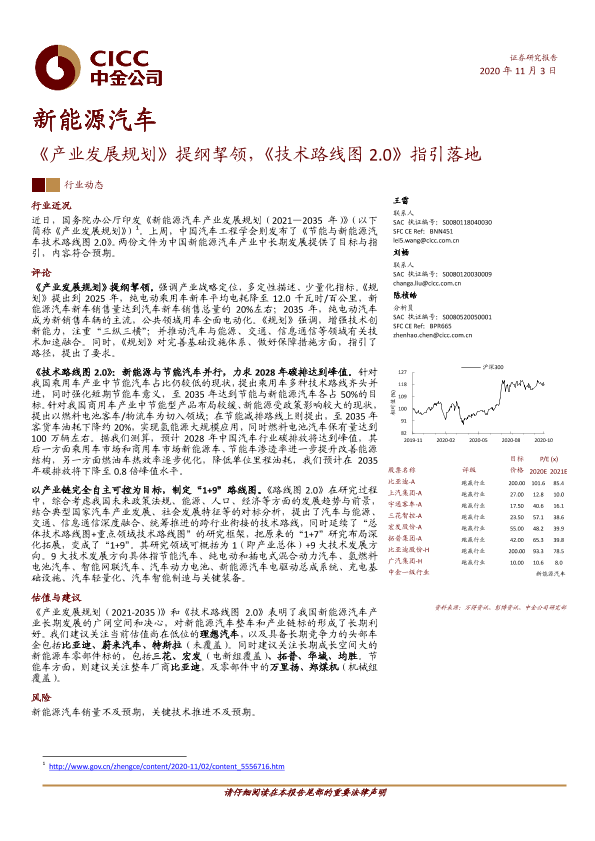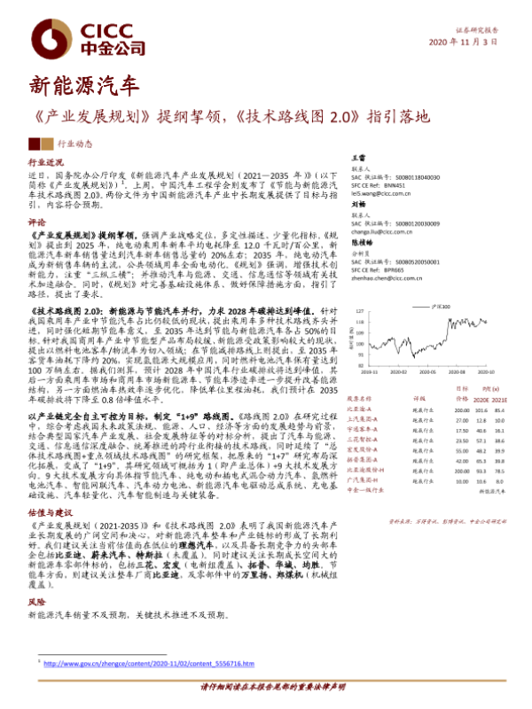 【中金公司】【20201103】新能源汽车行业:《产业发展规划》提纲挈领,《技术路线图2.0》指引落地-12页