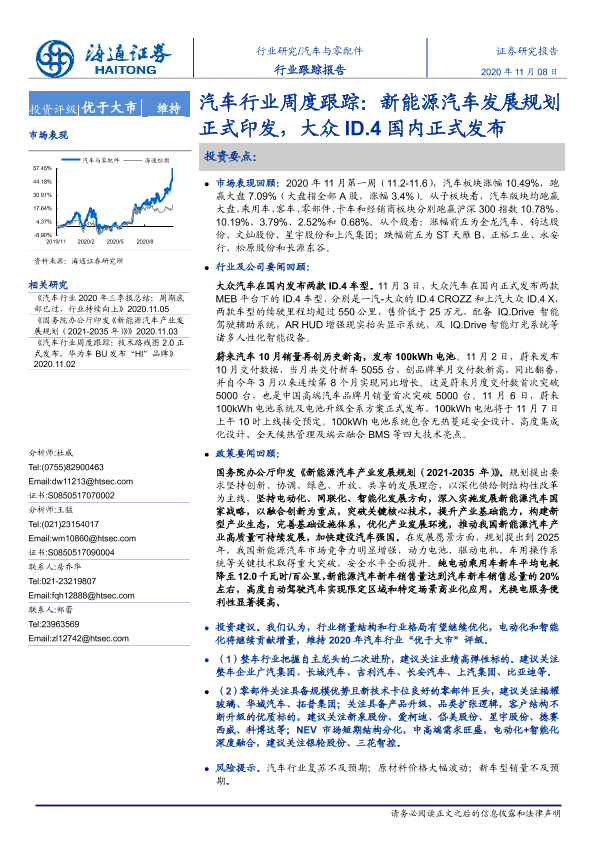 【海通证券】【20201108】汽车行业周度跟踪:新能源汽车发展规划正式印发,大众ID.4国内正式发布-4页
