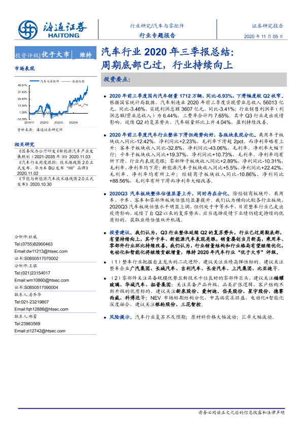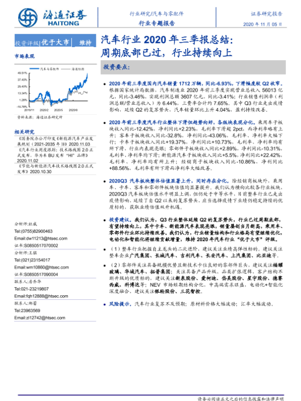 【海通证券】【20201105】汽车行业2020年三季报总结:周期底部已过,行业持续向上-26页