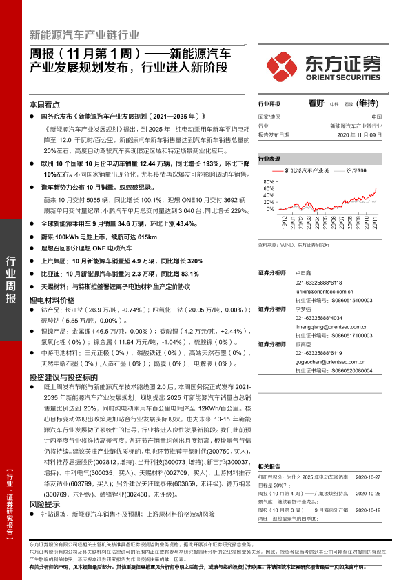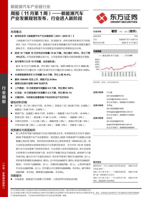 【东方证券】【20201109】20201109-东方证券-新能源汽车产业链行业周报(11月第1周):新能源汽车产业发展规划发布,行业进入新阶段-24页