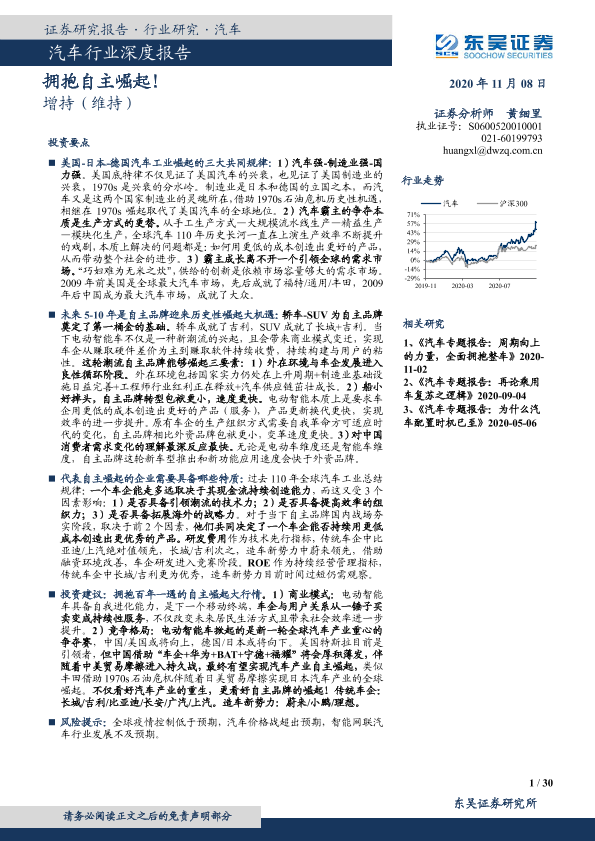 【东吴证券】【20201108】汽车行业深度报告:拥抱自主崛起!-30页