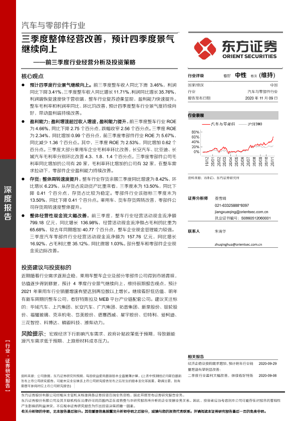 【东方证券】【20201109】汽车与零部件行业:前三季度行业经营分析及投资策略-21页
