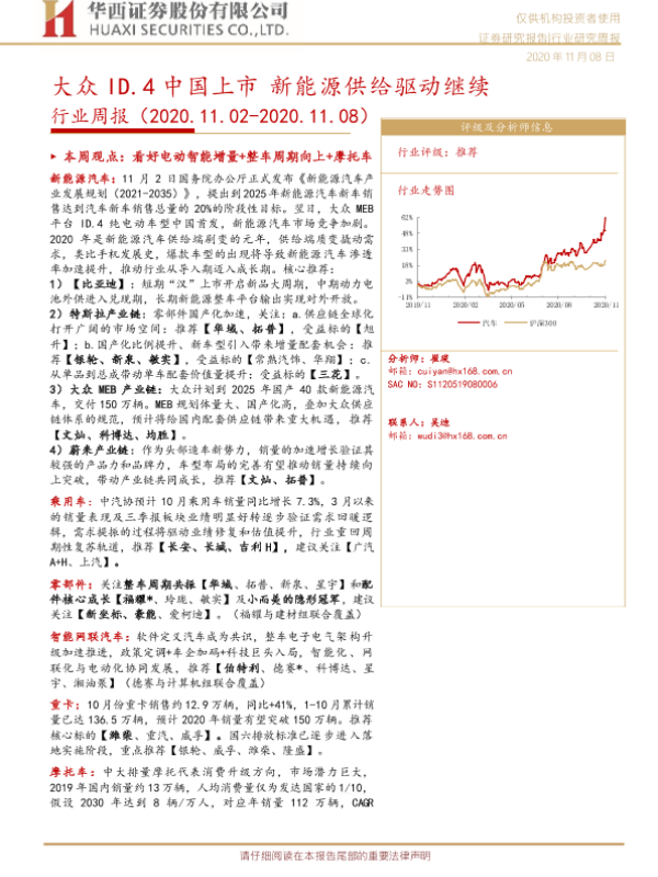 【华西证券】【20201108】20201108-华西证券-汽车行业周报:大众ID.4中国上市 新能源供给驱动继续-19页