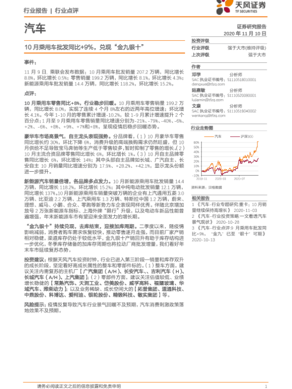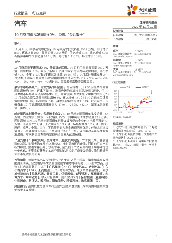 【天风证券】【20201110】20201110-天风证券-汽车行业点评:10月乘用车批发同比+9%,兑现“金九银十”-11页