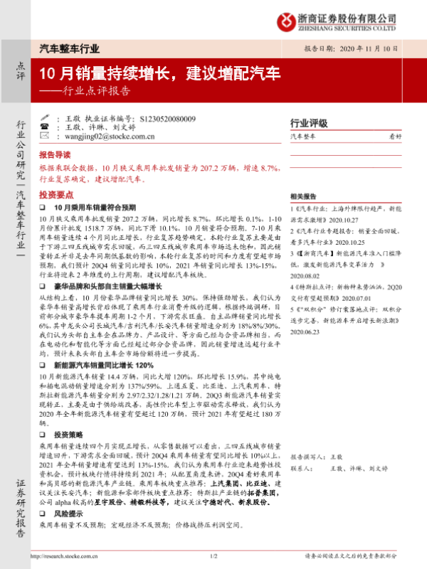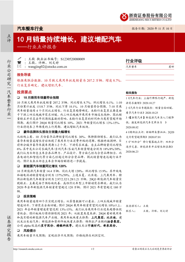 【浙商证券】【20201110】汽车整车行业点评报告:10月销量持续增长,建议增配汽车-2页
