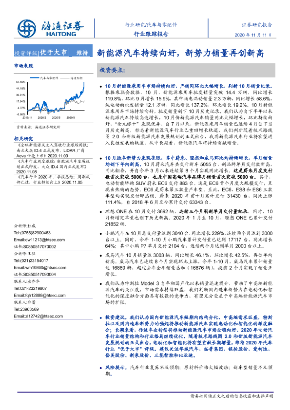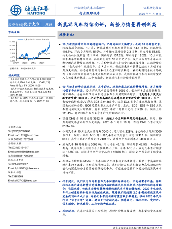 【海通证券】【20201111】汽车与零配件:新能源汽车持续向好,新势力销量再创新高-4页