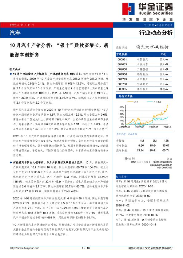 【华金证券】【20201111】10月汽车产销分析:“银十”延续高增长,新能源车创新高-16页