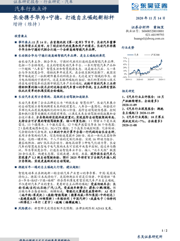 【东吴证券】【20201114】长安携手华为+宁德,打造自主崛起新标杆-2页