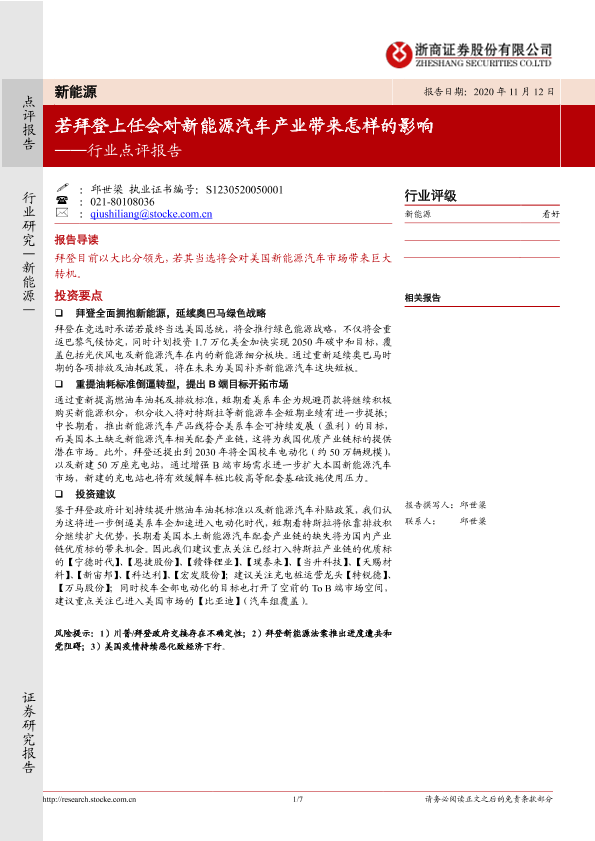 【浙商证券】【20201112】若拜登上任会对新能源汽车产业带来怎样的影响-7页