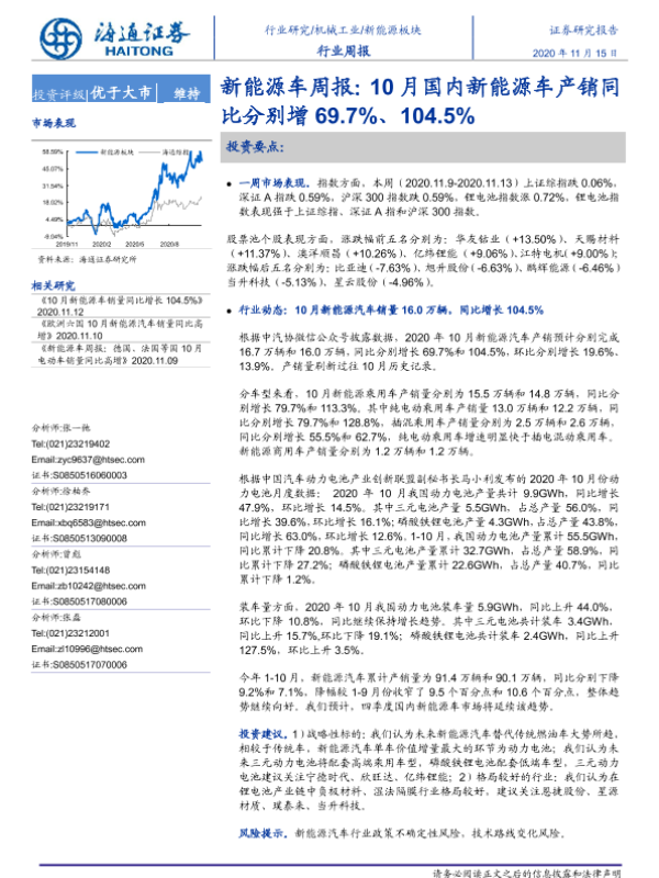 【海通证券】【20201115】20201115-海通证券-新能源车周报: 10月国内新能源车产销同比分别增69.7%、104.5%-3页