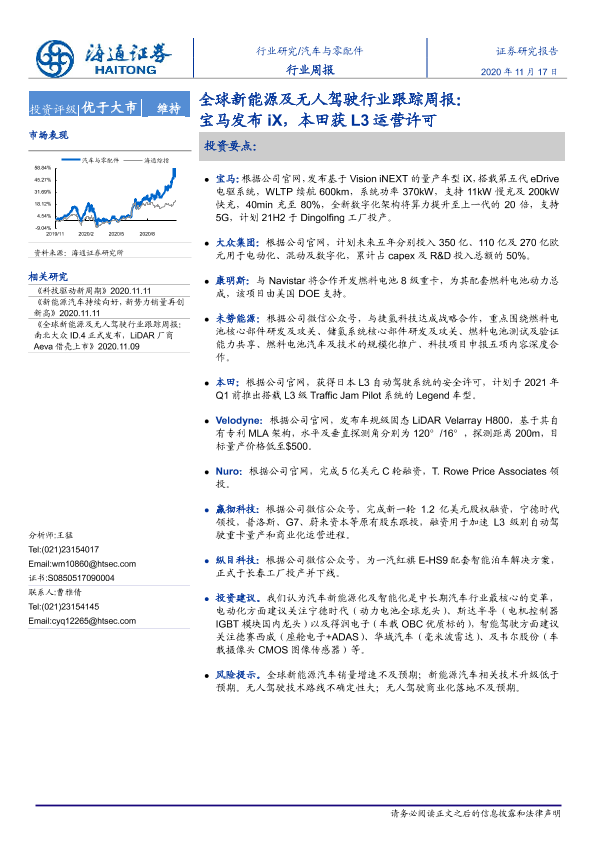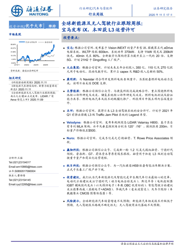【海通证券】【20201117】全球新能源及无人驾驶行业跟踪周报:宝马发布iX,本田获L3运营许可-2页