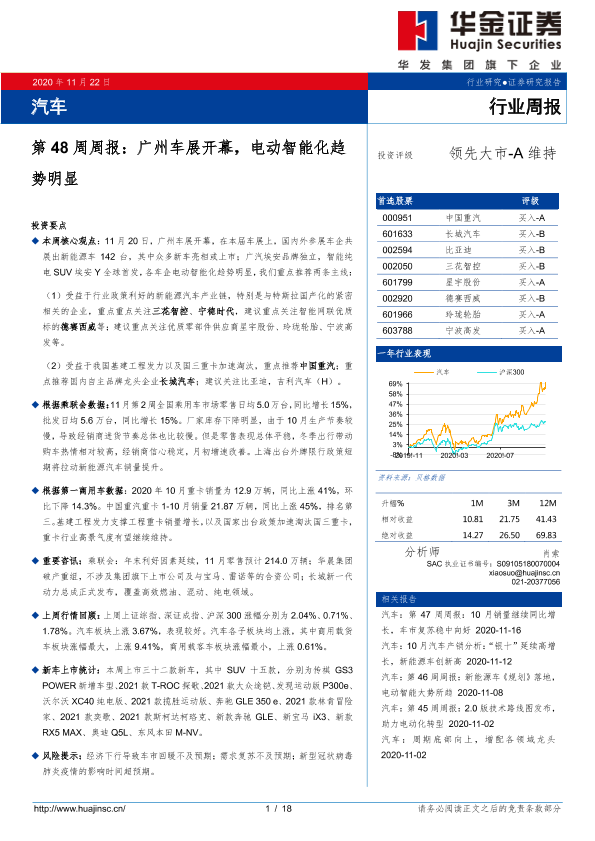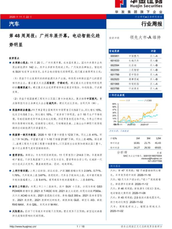 【华金证券】【20201122】汽车第48周周报:广州车展开幕,电动智能化趋势明显-18页