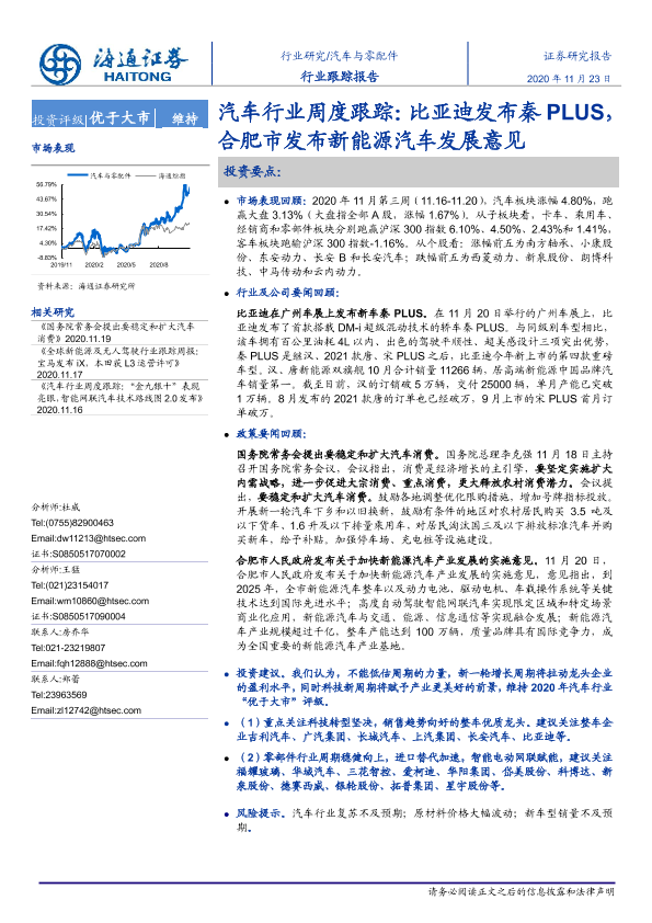 【海通证券】【20201123】汽车行业周度跟踪:比亚迪发布秦PLUS,合肥市发布新能源汽车发展意见-3页
