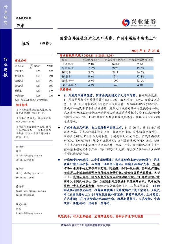 【兴业证券】【20201123】国常会再提稳定扩大汽车消费,广州车展新车密集上市-25页