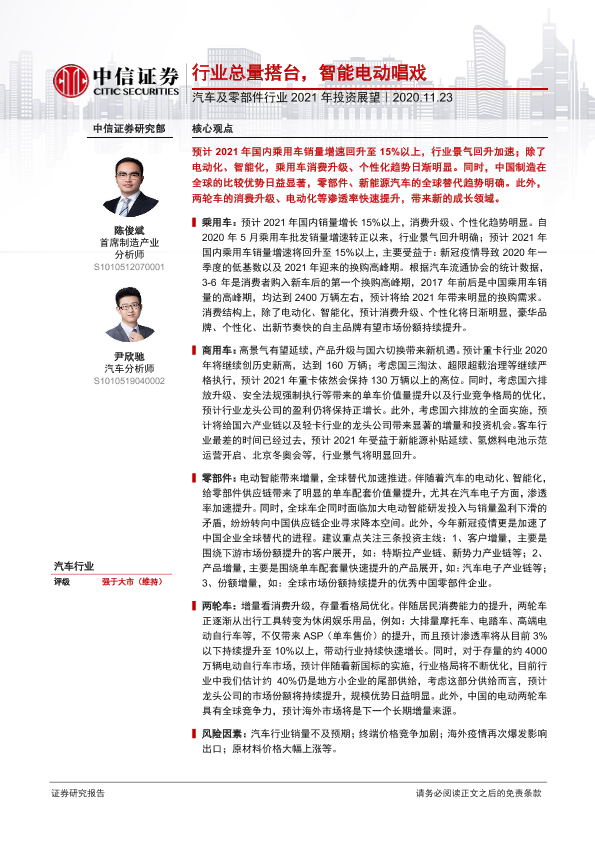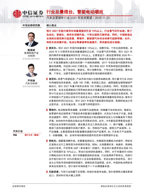 【中信证券】【20201123】汽车及零部件行业2021年投资展望:行业总量搭台,智能电动唱戏-30页