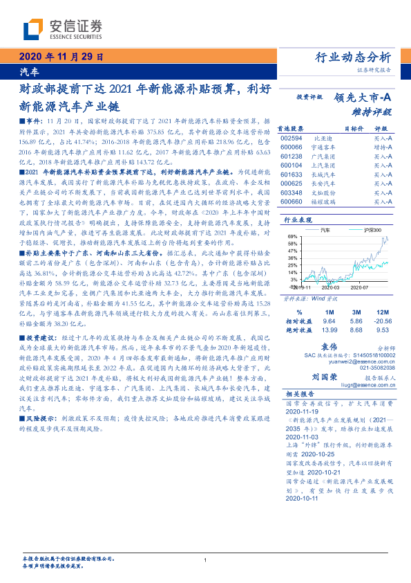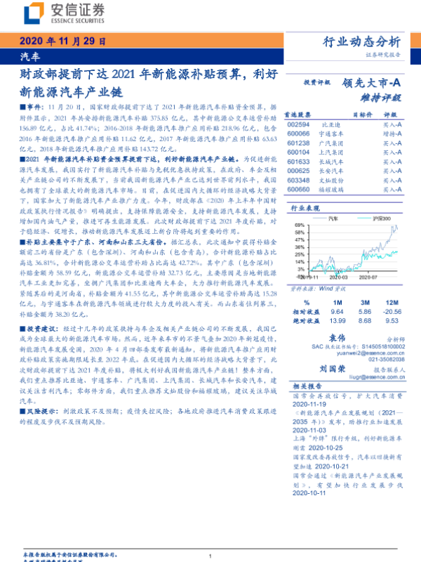 【安信证券】【20201129】财政部提前下达2021年新能源补贴预算,利好新能源汽车产业链-3页