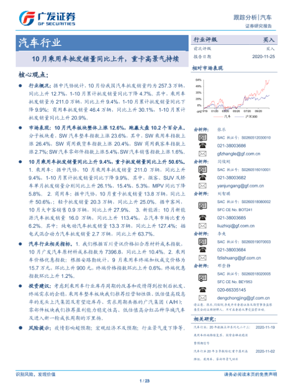 【广发证券】【20201125】20201125-广发证券-汽车行业:10月乘用车批发销量同比上升,重卡高景气持续-23页