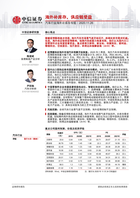 【中信证券】【20201126】汽车行业海外补库存专题:海外补库存,供应链受益-7页