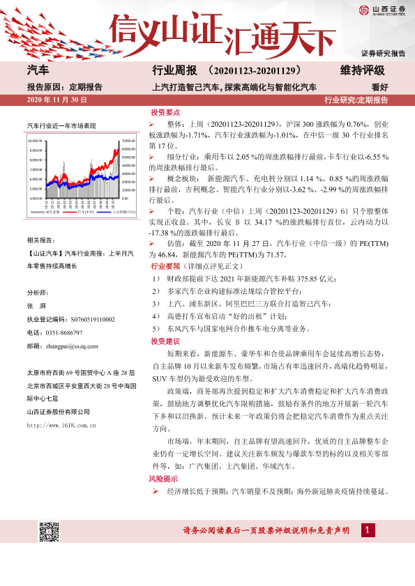 【山西证券】【20201130】20201130-山西证券-汽车行业周报:上汽打造智己汽车,探索高端化与智能化汽车-14页