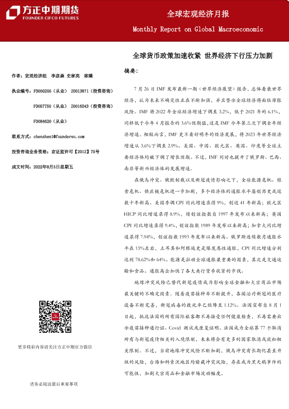 【方正中期期货】【20220805】全球宏观经济月报-20220805-30页