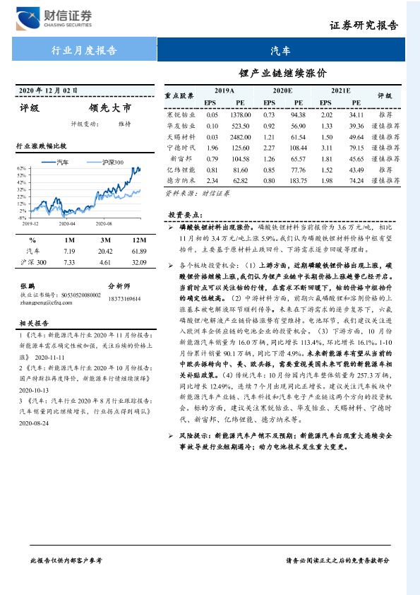 【财信证券】【20201202】汽车行业月度报告:锂产业链继续涨价-13页