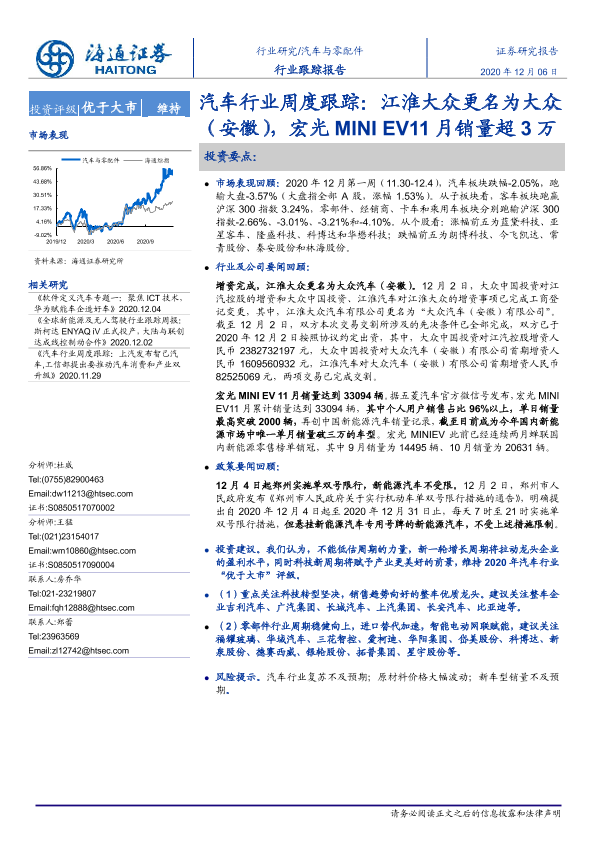【海通证券】【20201206】汽车行业周度跟踪:江淮大众更名为大众(安徽),宏光MINI EV11月销量超3万-3页