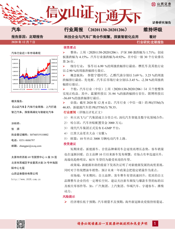【山西证券】【20201207】20201207-山西证券-汽车行业周报:科技企业与汽车厂商合作频繁,探索智能化应用-14页